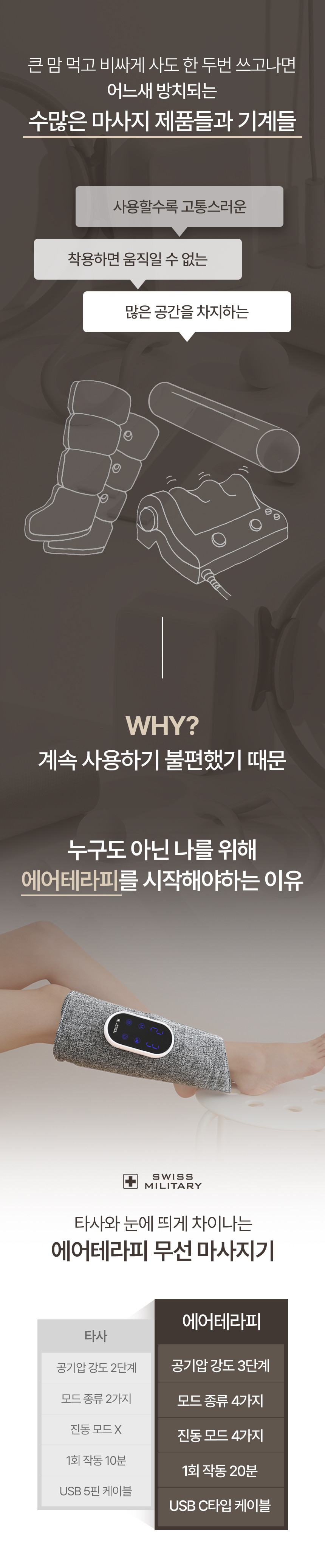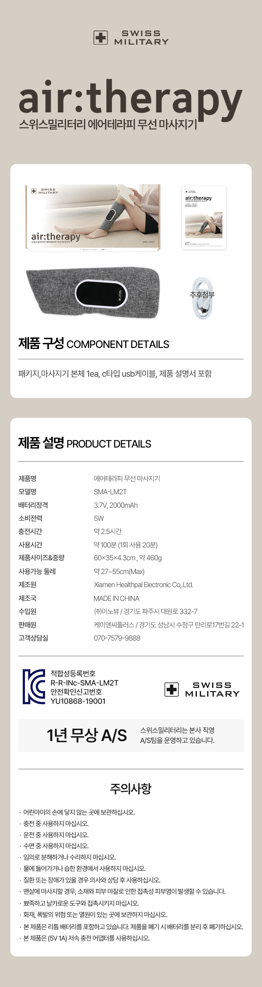 스위스밀리터리 에어테라피 무선 마사지기 1종[팔, 다리 겸용] SMA-LM2T