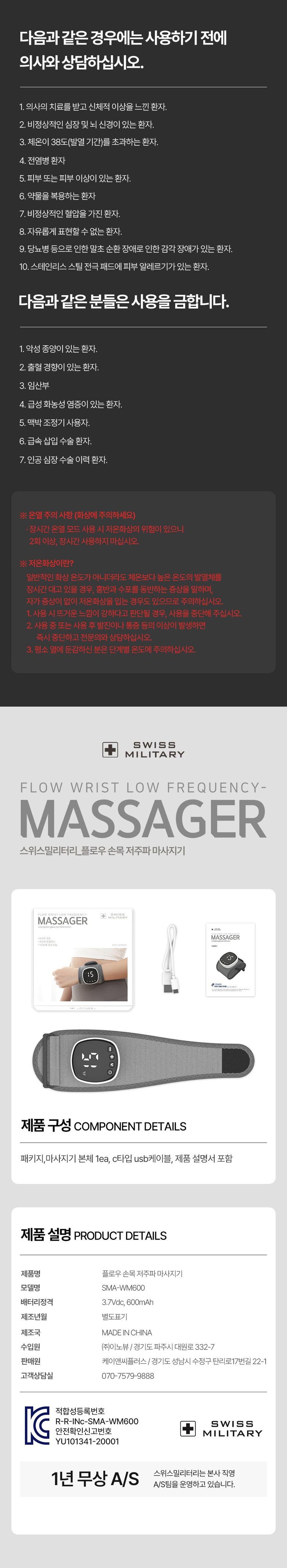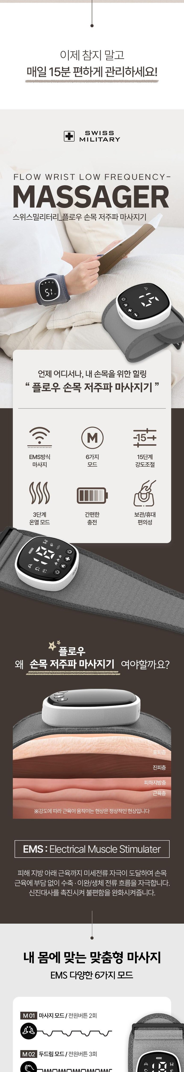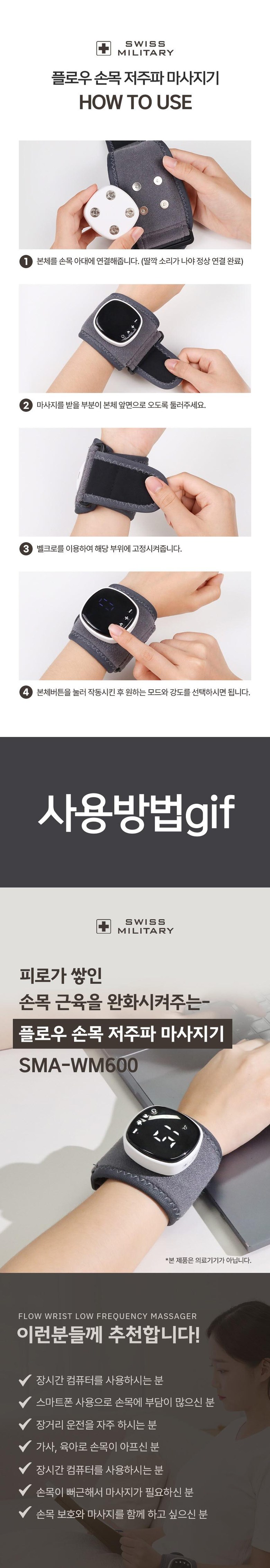 스위스밀리터리 플로우 손목 저주파 마사지기 SMA-WM600[온열+저주파]